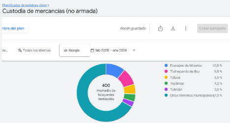 También existen cientos de búsquedas mensuales. Eso significa que todos los meses hay empresas que necesitan contratar el servicio de custodia al transporte.